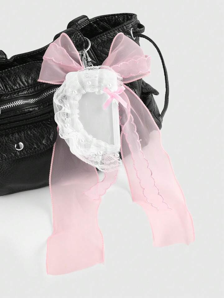 Kawaii 2 قطعة بأسلوب كوري كاواي، فتاة رائعة ومتنوعة الاستخدامات، حاملة بطاقات وسلسلة مفاتيح زخرفية شفافة محاطة بالخرز الصناعي والشريط الأبيض والزهري عالي الجودة، مناسبة للموظف والطالب والاستخدام اليومي وهدايا المناسبات