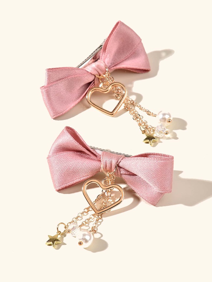 قطعتين من مشابك الشعر اليدوية الوردية للنساء، إكسسوارات للرأس في الحفلات اليومية أنيقة