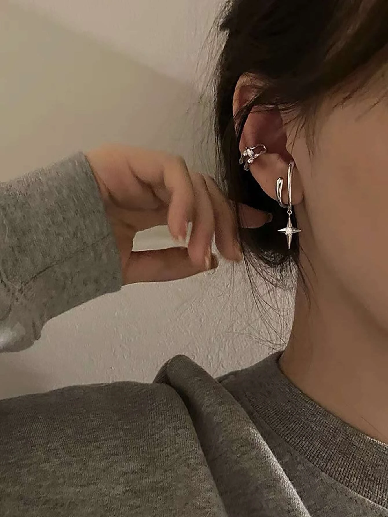 مشبك أذن حجر الراين و نجمة رباعية زخرفة 2 قطع