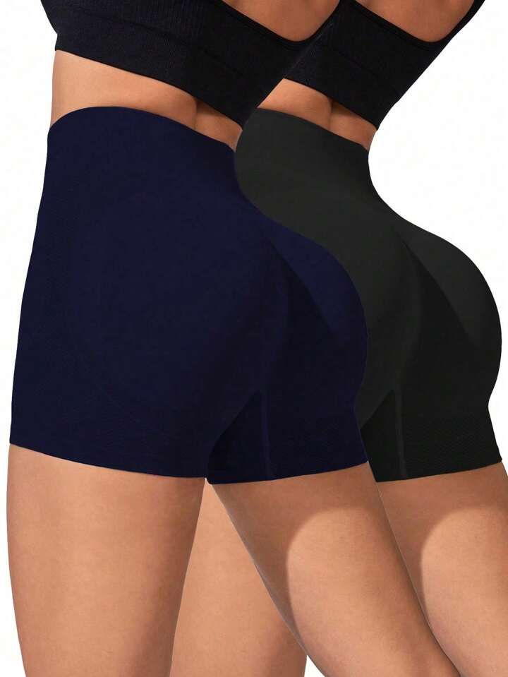 2 قطعة شورت رياضي مخرم طويل الخصر بتصميم منسق، برفع للأرداف، قصير للسيدات وتوب مقصور