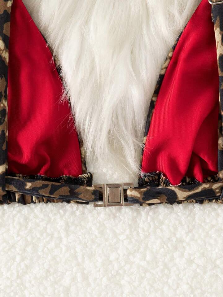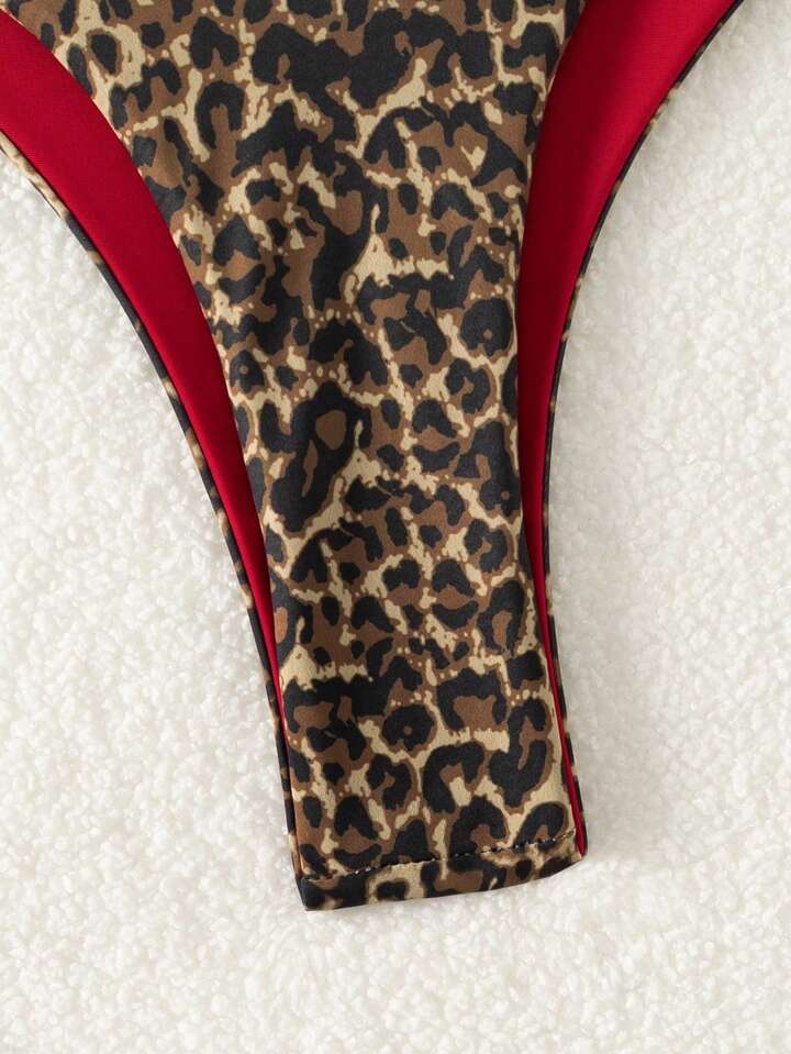 مجموعة ملابس السباحة المنقطة بنمط النمر للنساء قطعتين، لاستخدام في العطلات والشاطئ، طقم بكيني منقط بنمط النمر لفصل الصيف