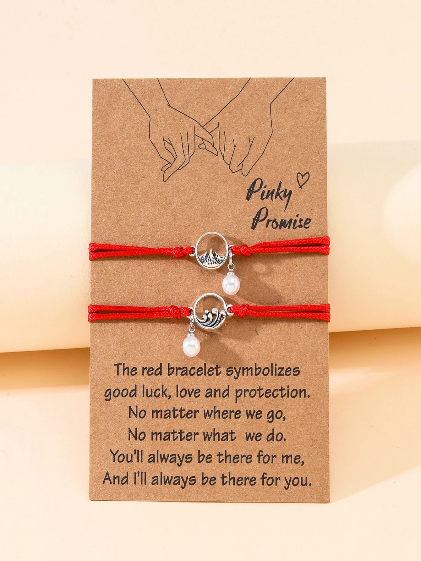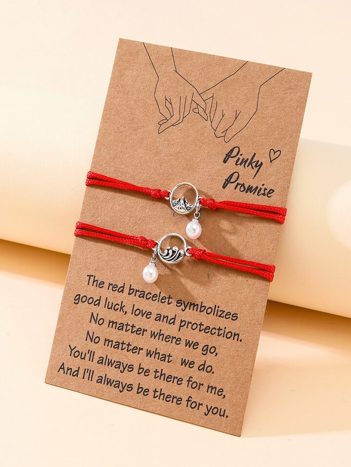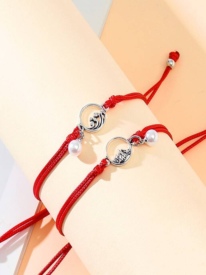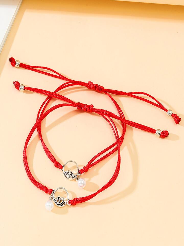 سوار جبل و متموج زخرفة بتعليقة لؤلؤ اصطناعي 2قطع/طقم