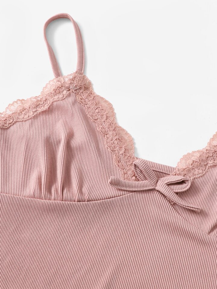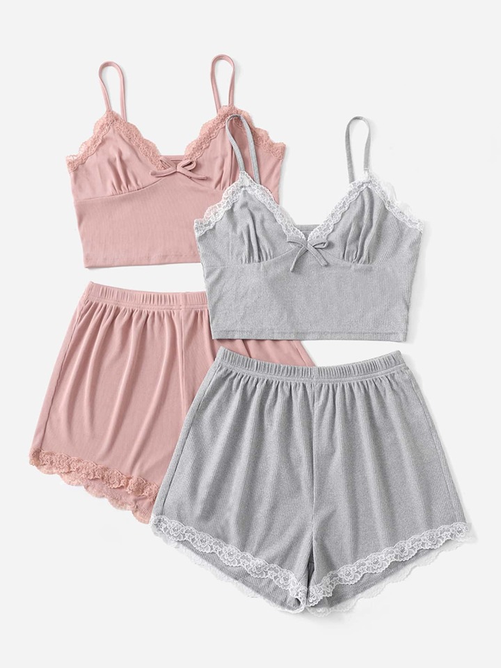 مجموعتان من بيجامة بشريط دانتيل أمام الفيونكة / مجموعة بيجامة