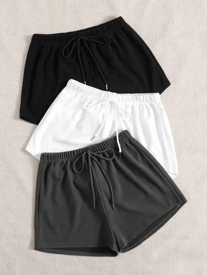 شورت نوم بلون موحد بخصر بعقدة 3 قطع