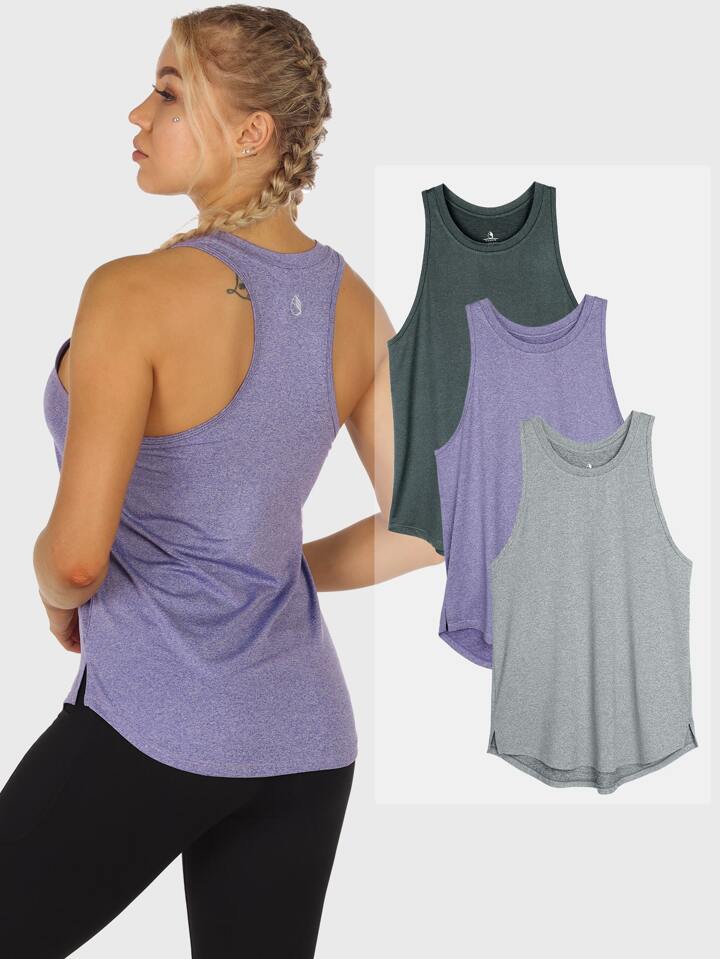 3 قطع/مجموعة ملابس رياضية بدون أكمام مع رقبة دائرية وتصميم ظهر ريسر
