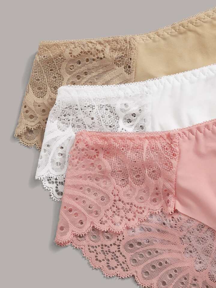 طقم سراويل داخلي بدانتيل متباين 3 قطع
