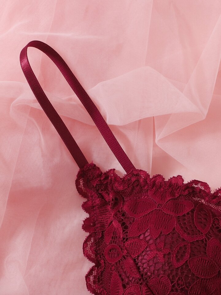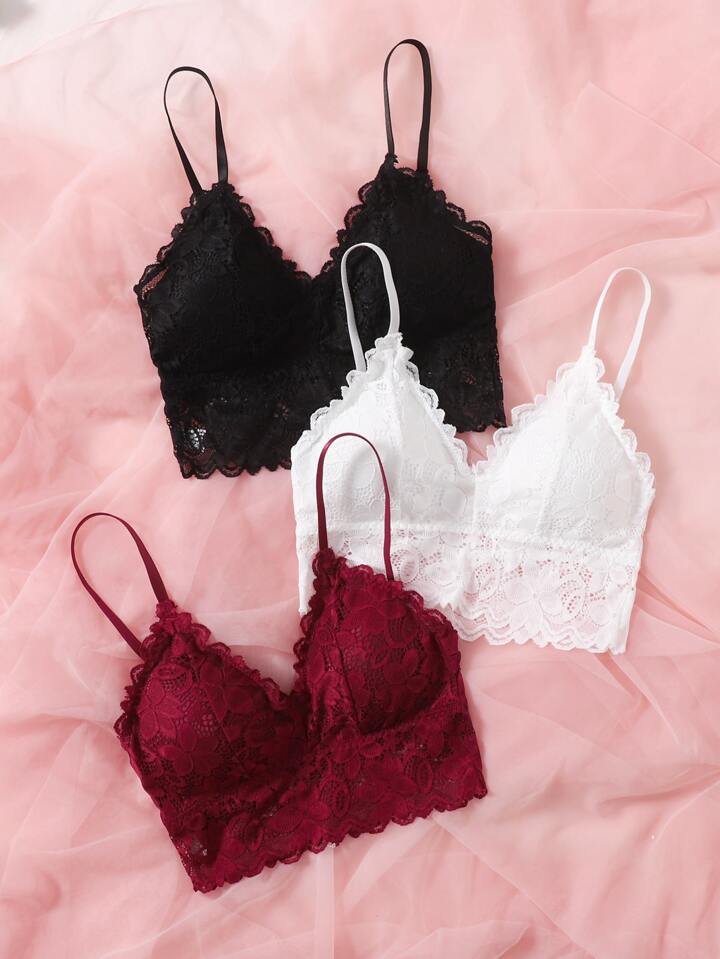 طقم ملابس داخلية من الدانتيل المزهر 3 قطع