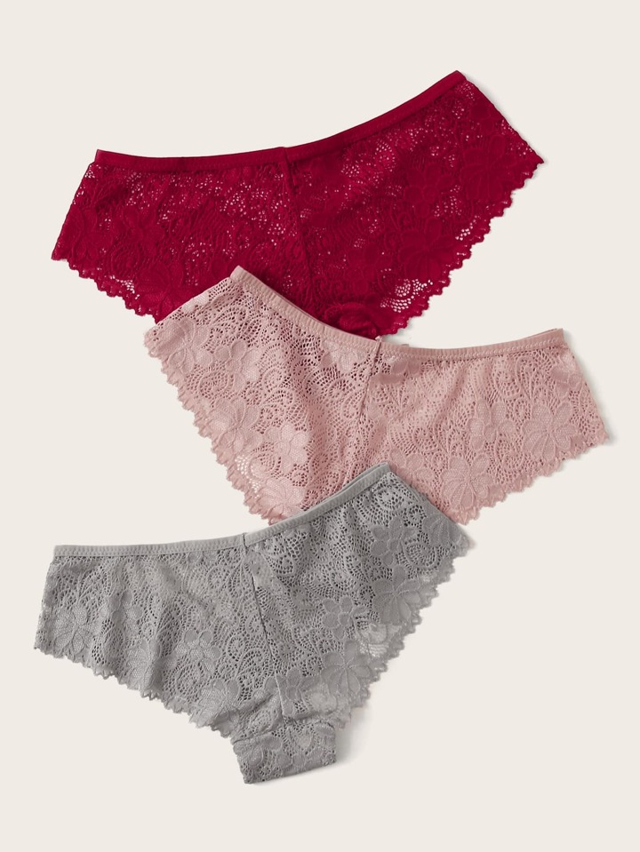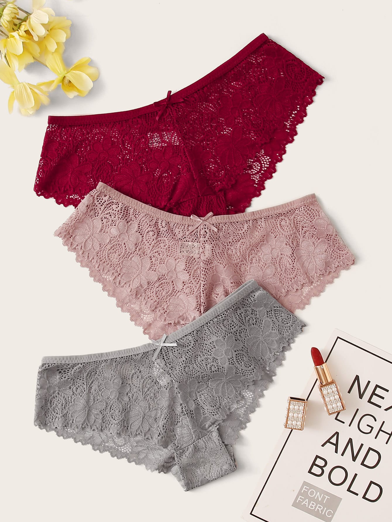 طقم سراويل داخلية بدانتيل مزهر 3 قطع