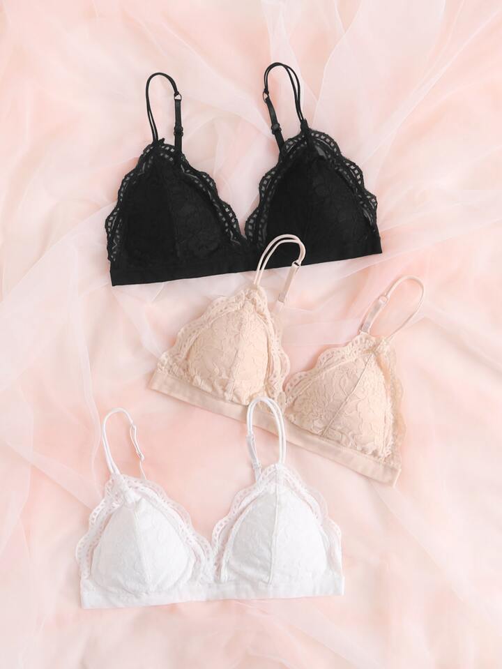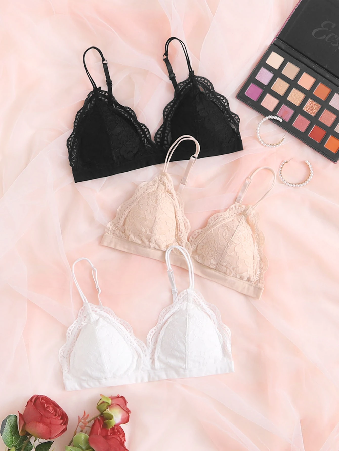 طقم حمالة صدر مثلث بدانتيل مزهر 3 قطع