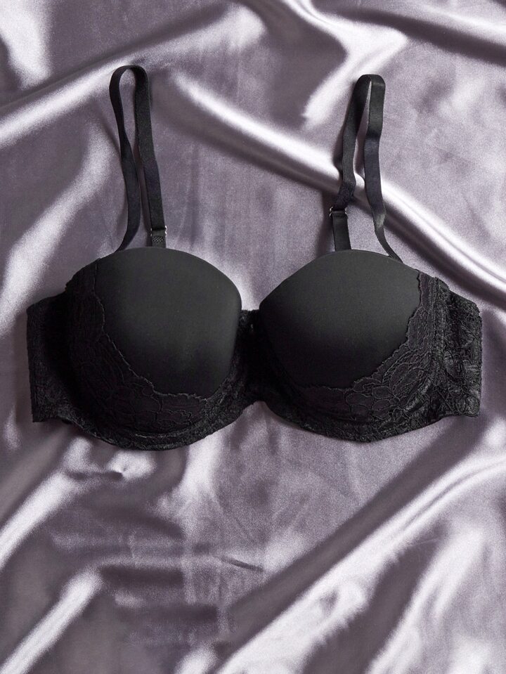 طقم حمالة صدر ضغط مدعم بدانتيل متباين 3 قطع