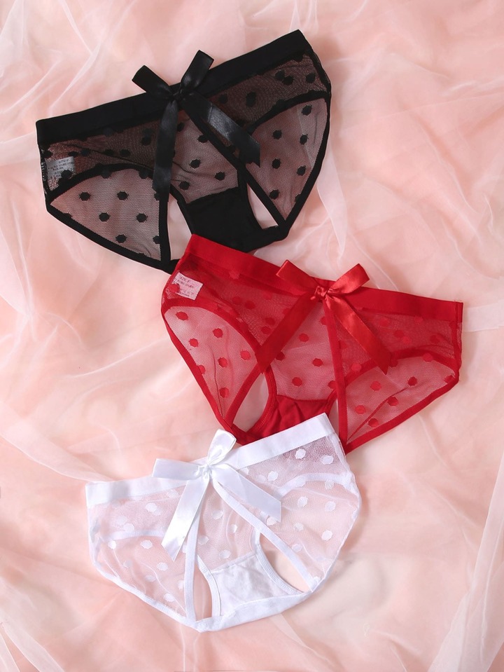 طقم كلوت شبكي شفاف منقط بولكا 3 عبوات