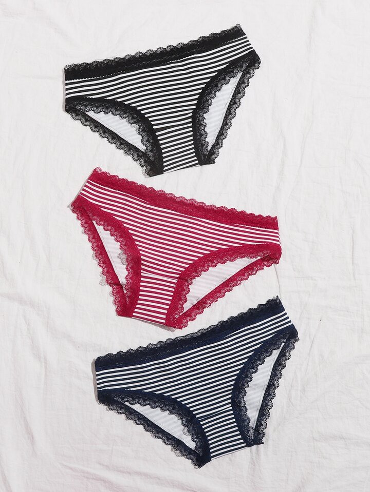 3 حزمة مجموعة سراويل الدانتيل مخطط