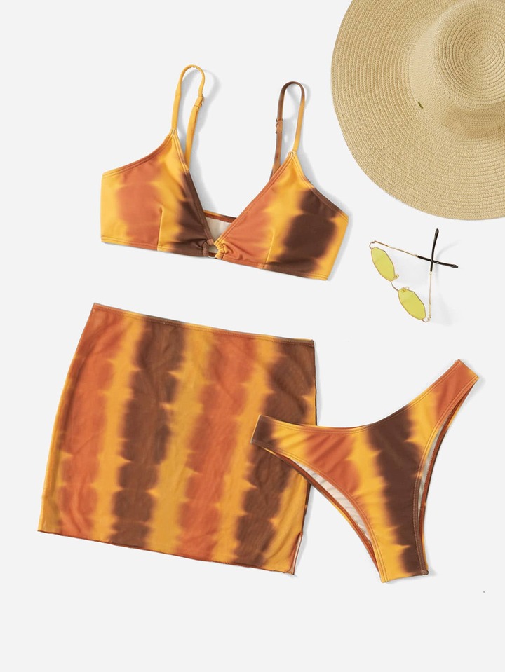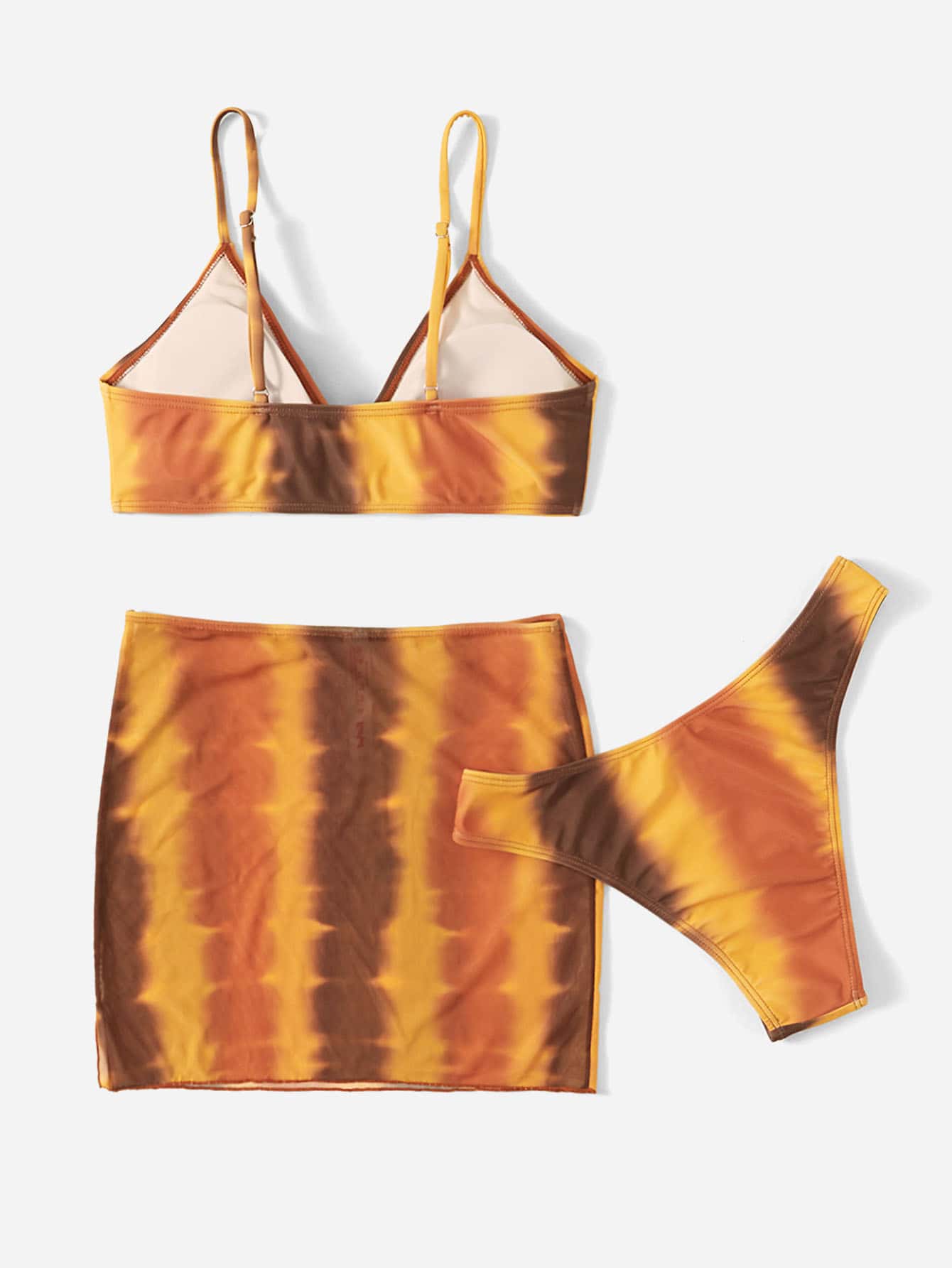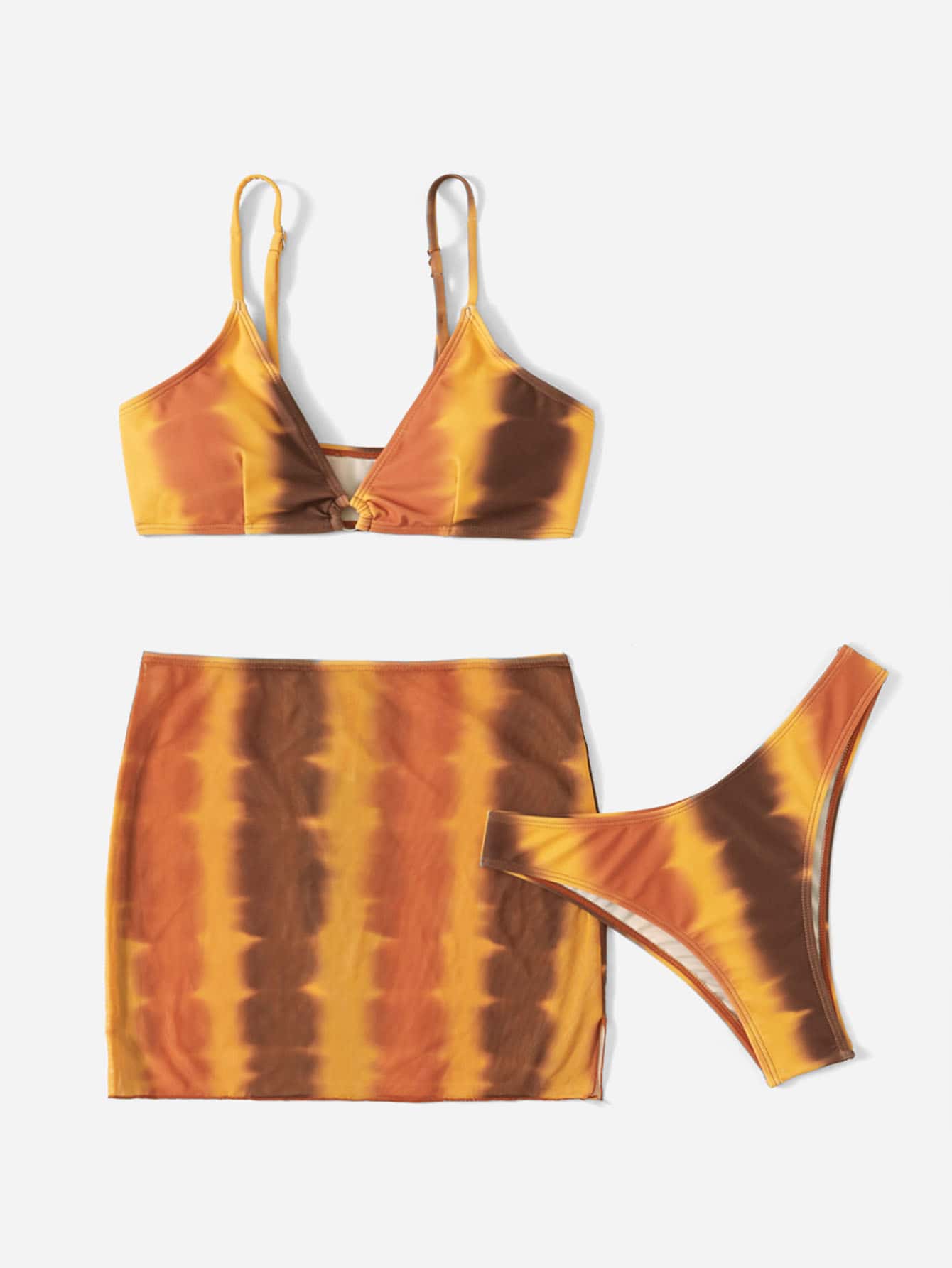 ثلاثة حزم بيكيني ملون بتقنية الربط وتنورة شاطئ