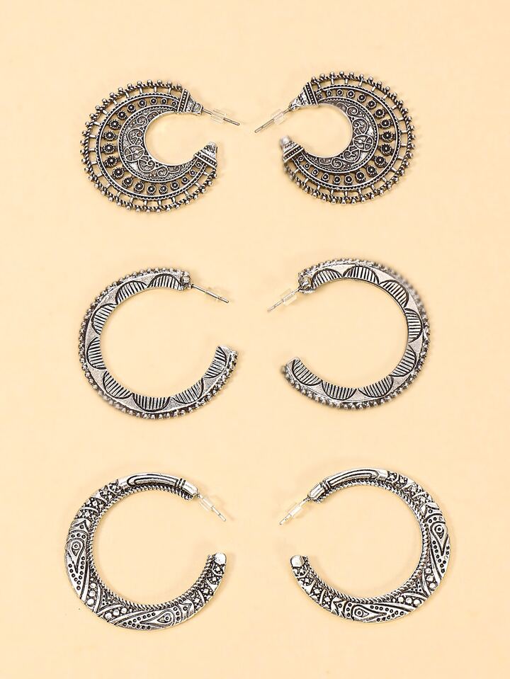 اقراط حلقي ملفوف بوهمي 3 ازواج