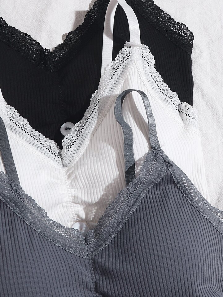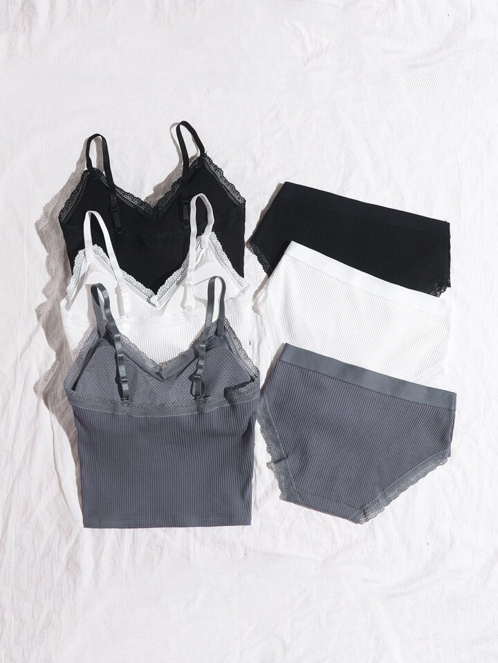 طقم ملابس داخلية مقلم بدانتيل ومضلع 3 أزواج