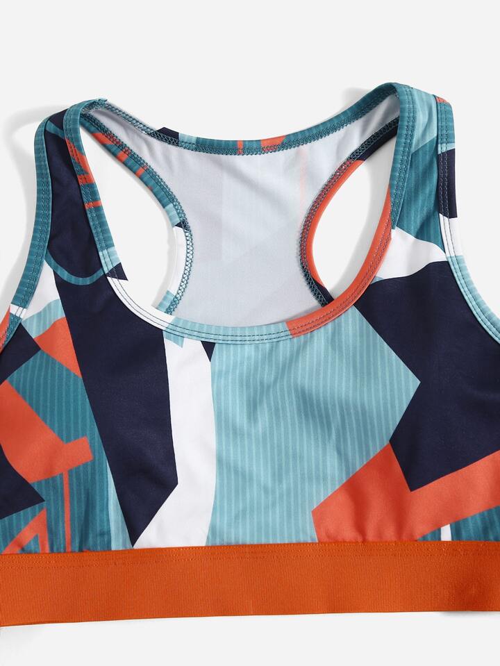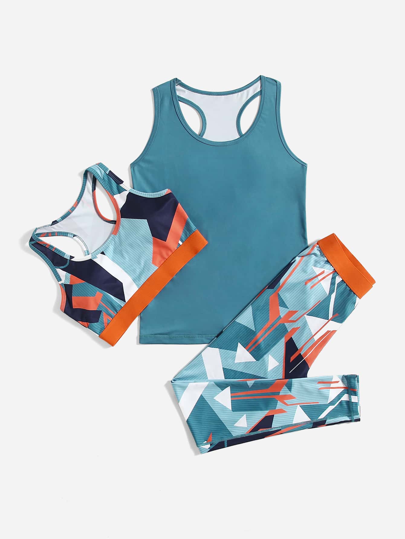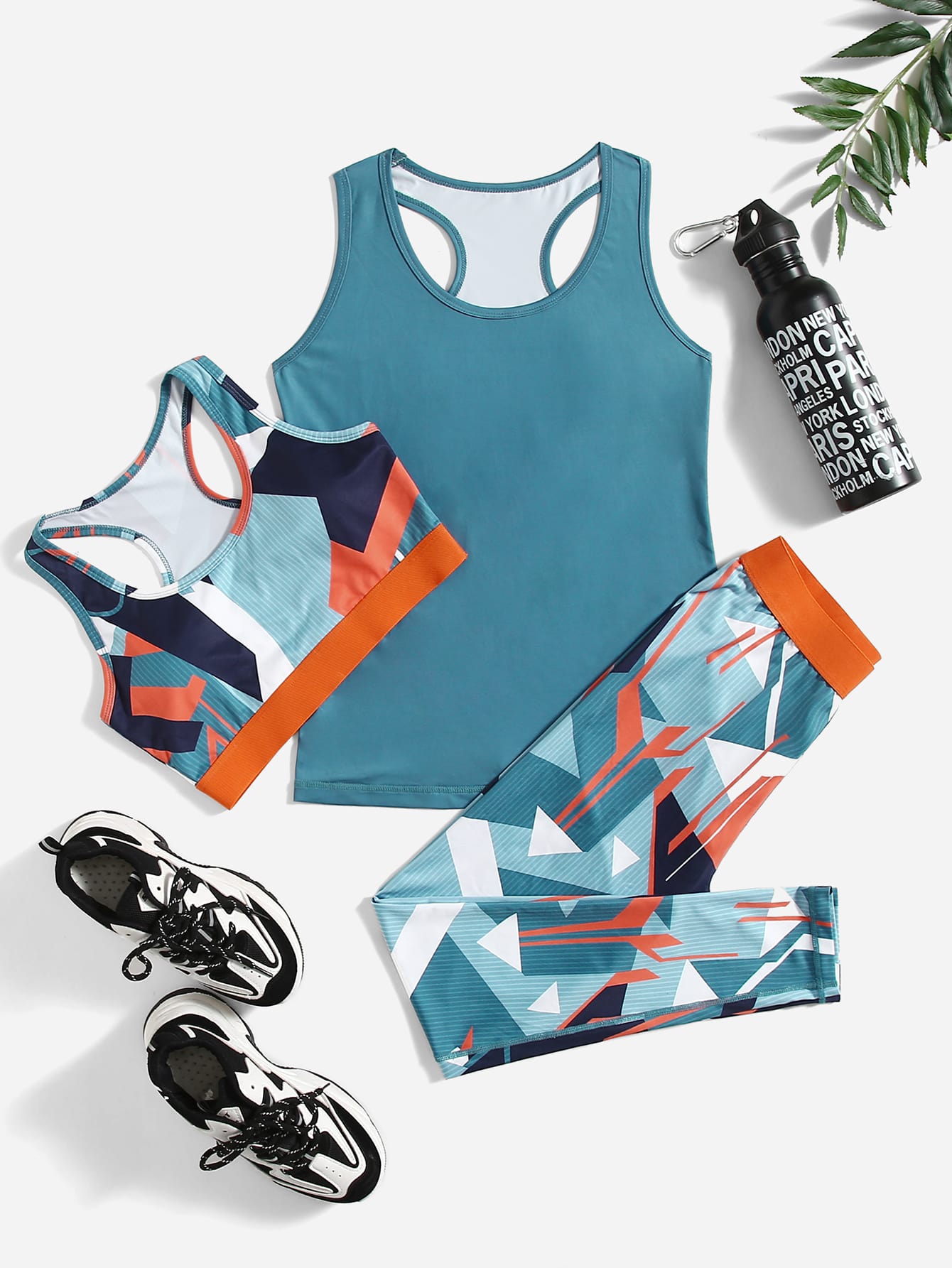 يمتص العرق ويسمح بالتهوية مجموعة يوجا بطباعة جغرافية ملابس رياضية حمالة صدر ظهر متسابق وخزان وبنطلونات ضيقة 3 قطع