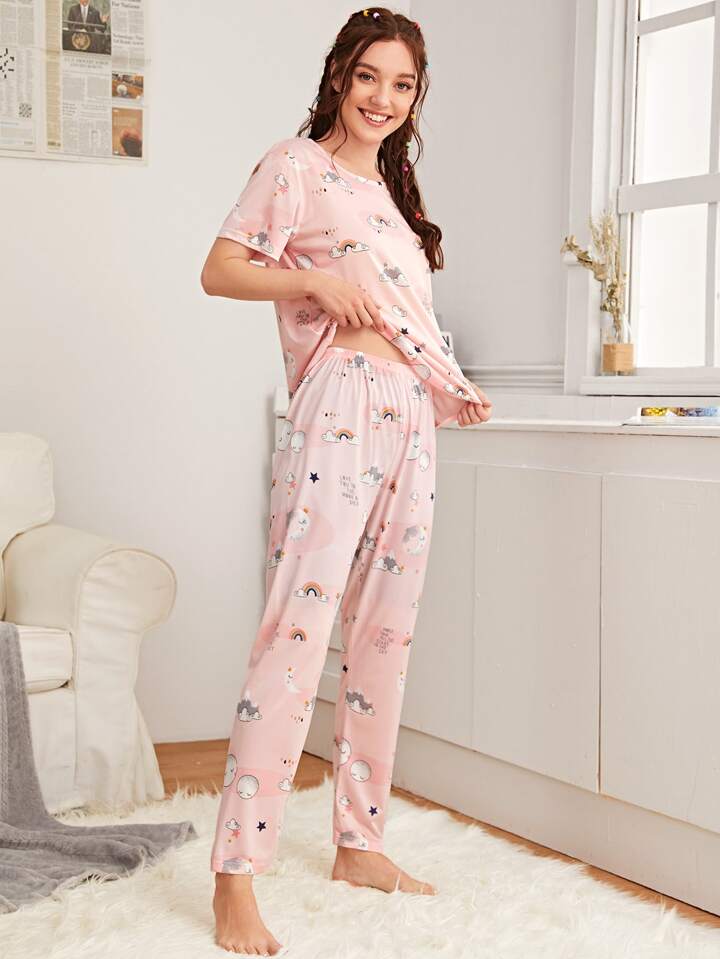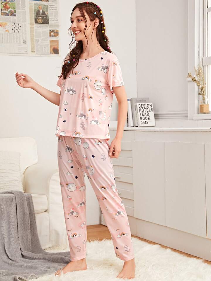3قطع طقم بيجاما بطبعة كرتونية شاملة غطاء للعين