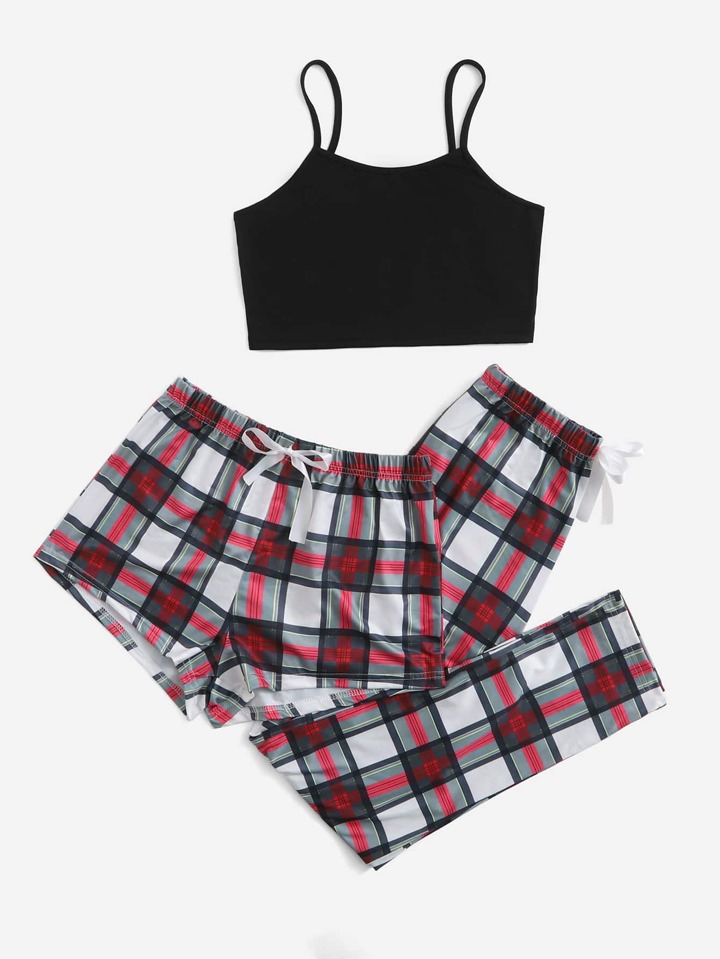3قطع طقم بيجاما بتصميم عقدة أمامية مخطط