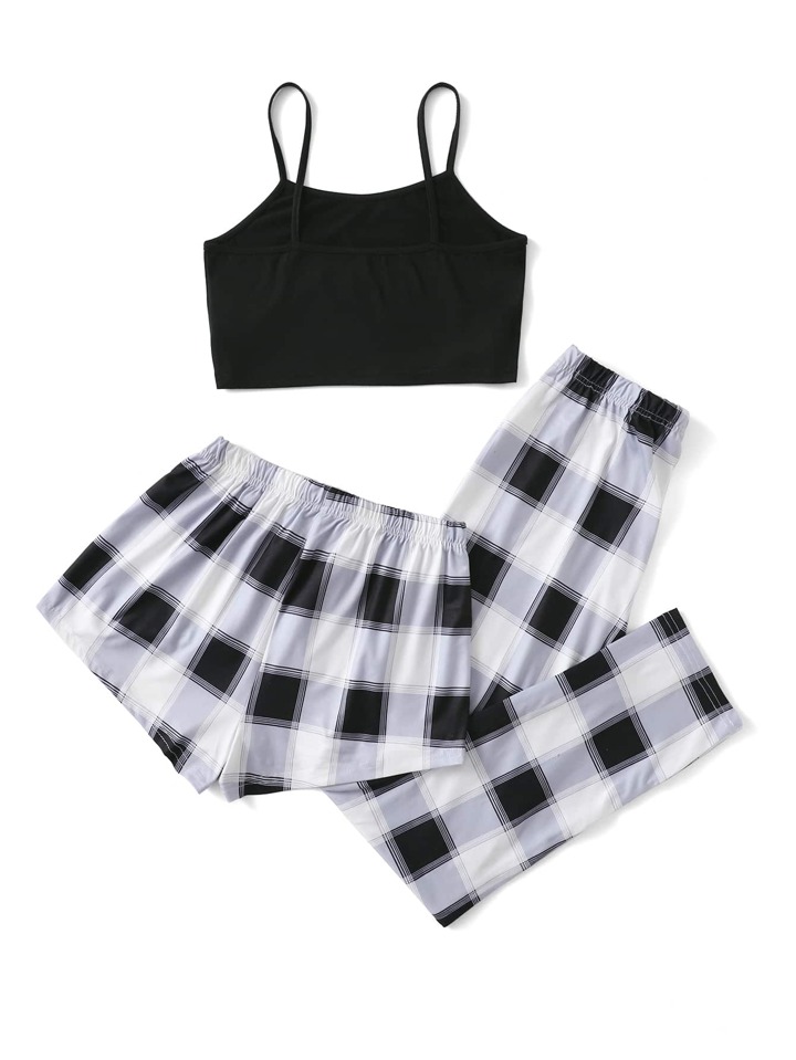 3قطع طقم بيجاما/طقم سترات حمالات إمامية عقدة رقبة مخطط