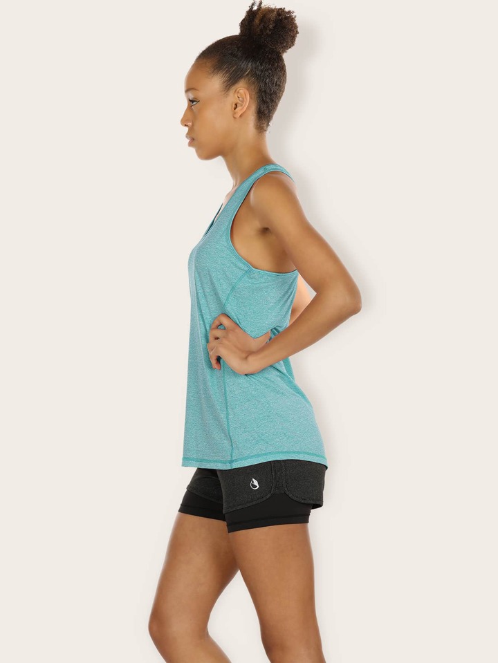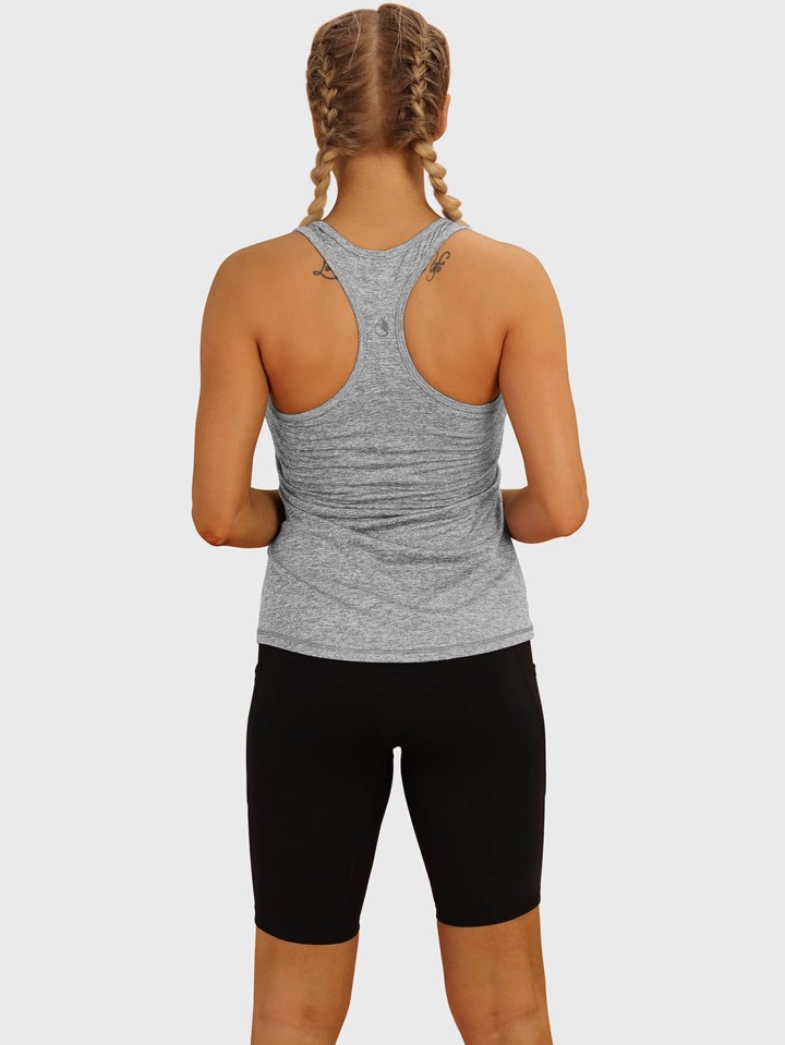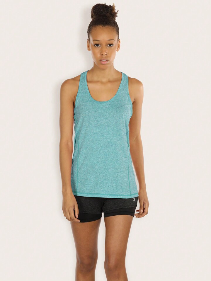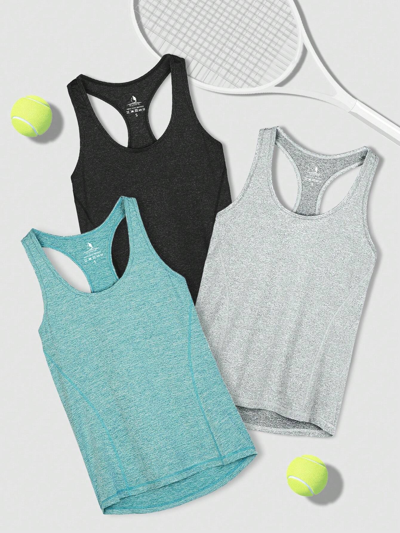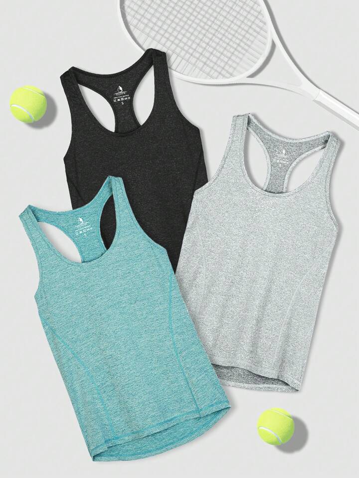 زي نسائي للرياضة بنمط خطوط عريضة غير متناظرة على الظهر وشبك برشام 3 قطع
