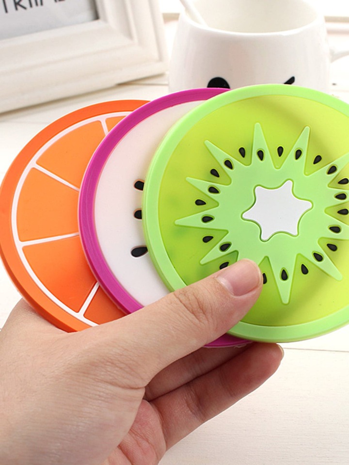 كوستر دائرية لون عشوائي، كوستر بولي كلوريد الفينيل مضاد للانزلاق على شكل فاكهة إبداعية للمنزل 3 قطع