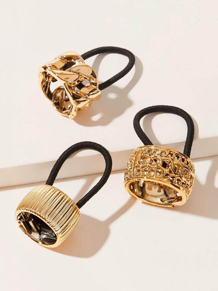 3 قطع خاتم ديكور ربطة شعر , فلز شكل دائري شعر مرون عصابة شعر ربطات الشعر تسريحة ذيل فرس مقبض حبل الشعر اكسسوارت للنساء