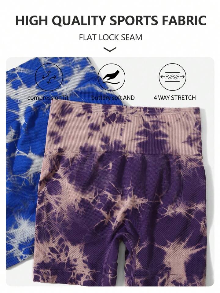 شورت رياضي سلس تنفس ناعم صبغ متعادل شد الأرداف مجعد 3 قطع