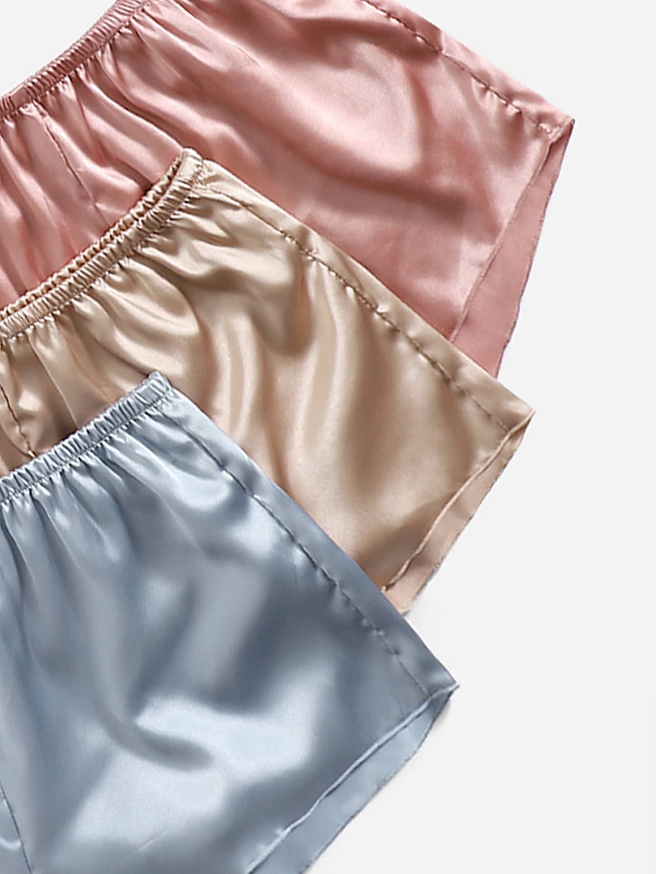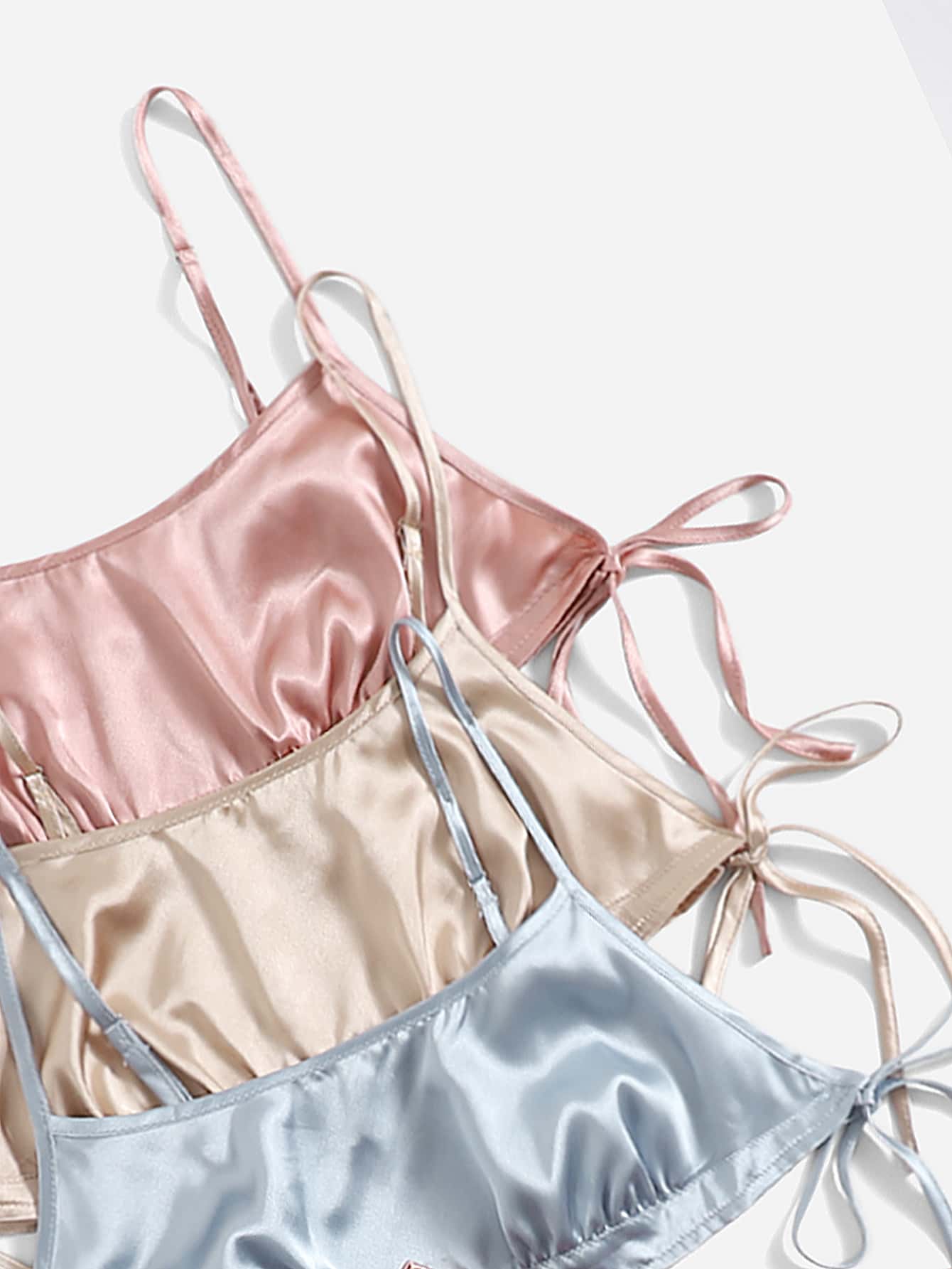 طقم بيجامة/بجامة سادة أربطة الجوانب من القماش الساتان 3 قطع