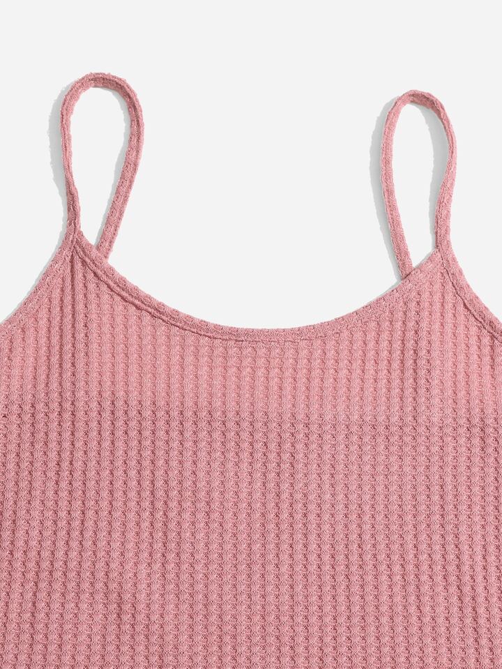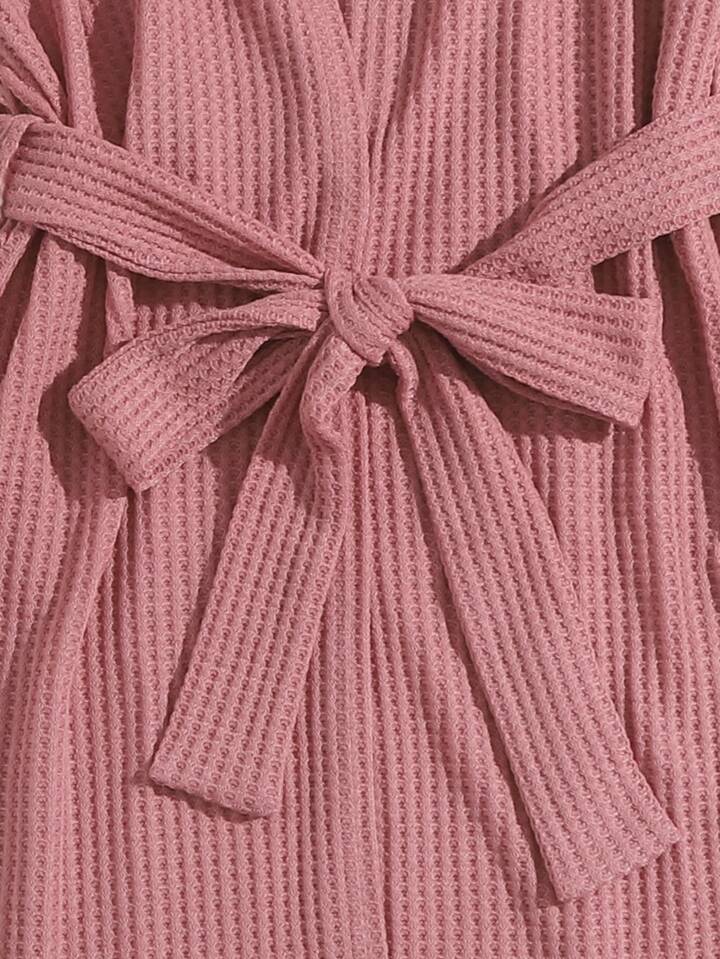 3 قطع مجموعة ملابس منزلية مريحة تتكون من رداء بحزام بنسيج الوافل وأعلى كامي وشورت، ملابس خريف وشتاء
