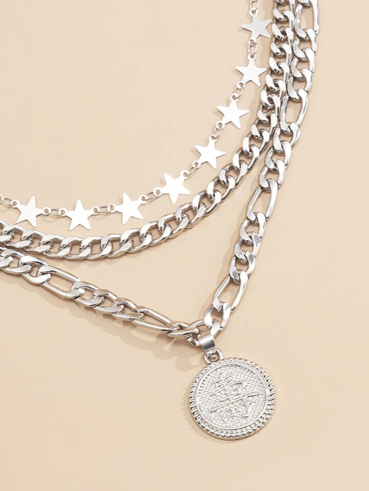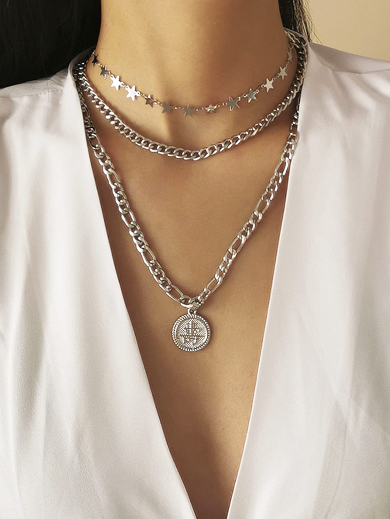 3قطعات/طقم الموضة أسلوب أساسي & عتيق مستدير بتعليقة عملة قلادة بطبقات طقم