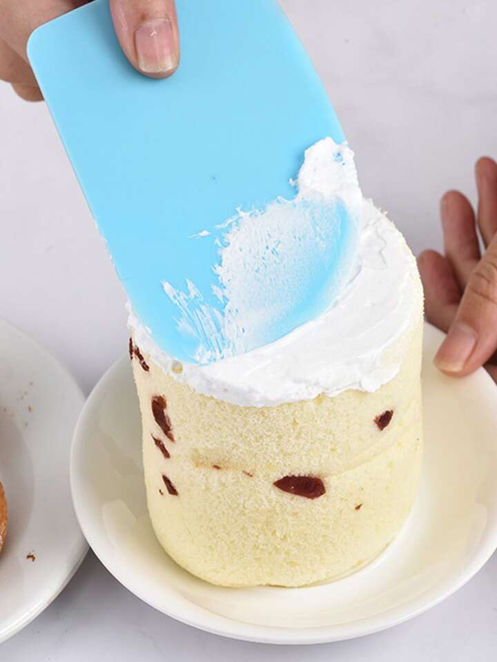 مكشطة كريمية ذات لون سادة عشوائي، أداة خلط مكشطة كعك منزلية، مكشطة عجين متعددة الأغراض، منحنية مستقيمة وحافة متعرجة 3 قطع / مجموعة