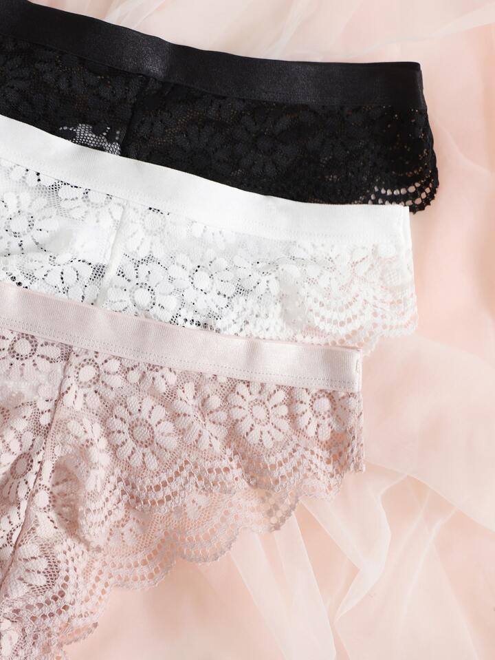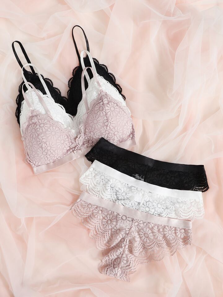 طقم ملابس داخلية بديكور فيونكة بدانتيل مزهر 3 اطقم
