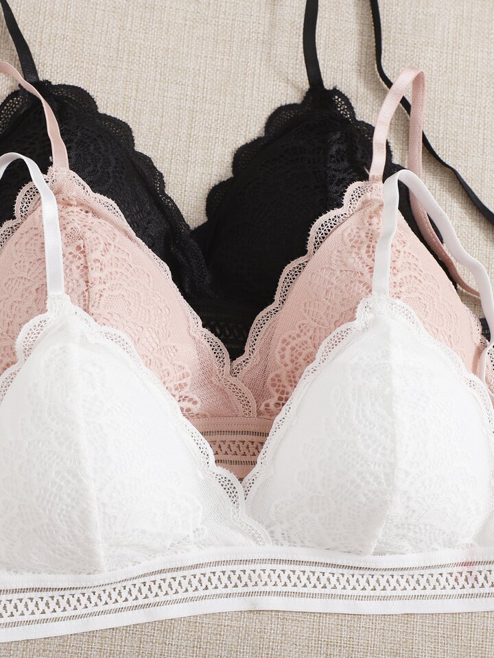 طقم لانجري مكون من حمّالة صدر وسروال دانتيل زهري، 3 أطقم