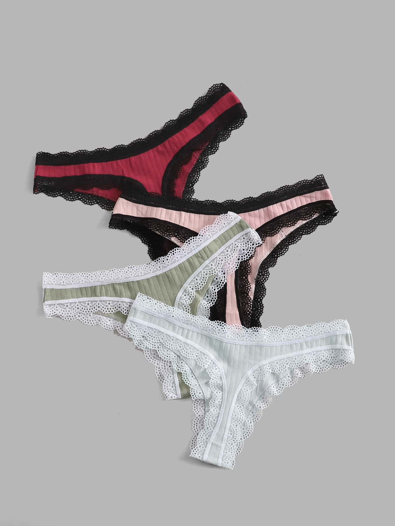 طقم سروال داخلي مقلم دانتيل 4 قطع