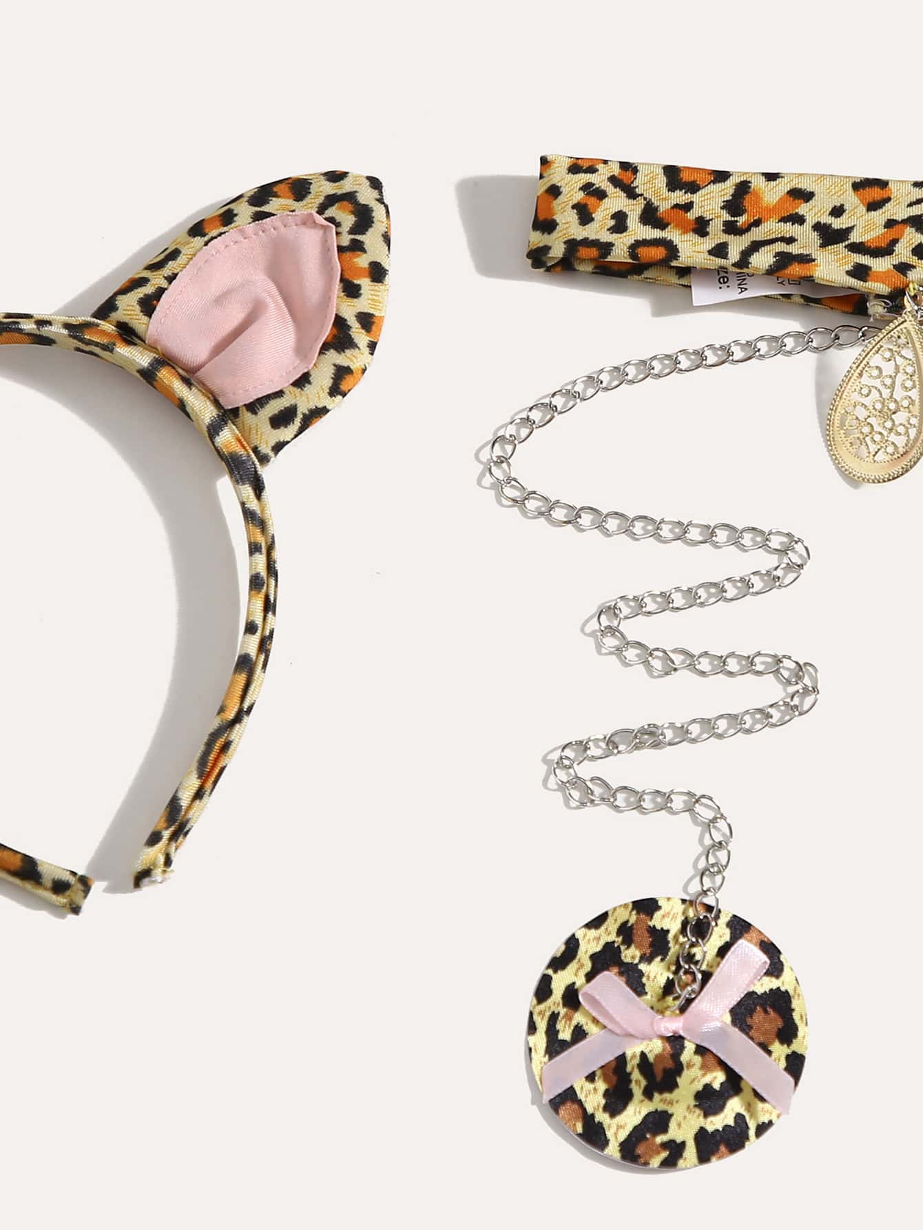 طقم لباس تنكري حيوانات متصل بسلسلة نمط الفهد 4 قطع
