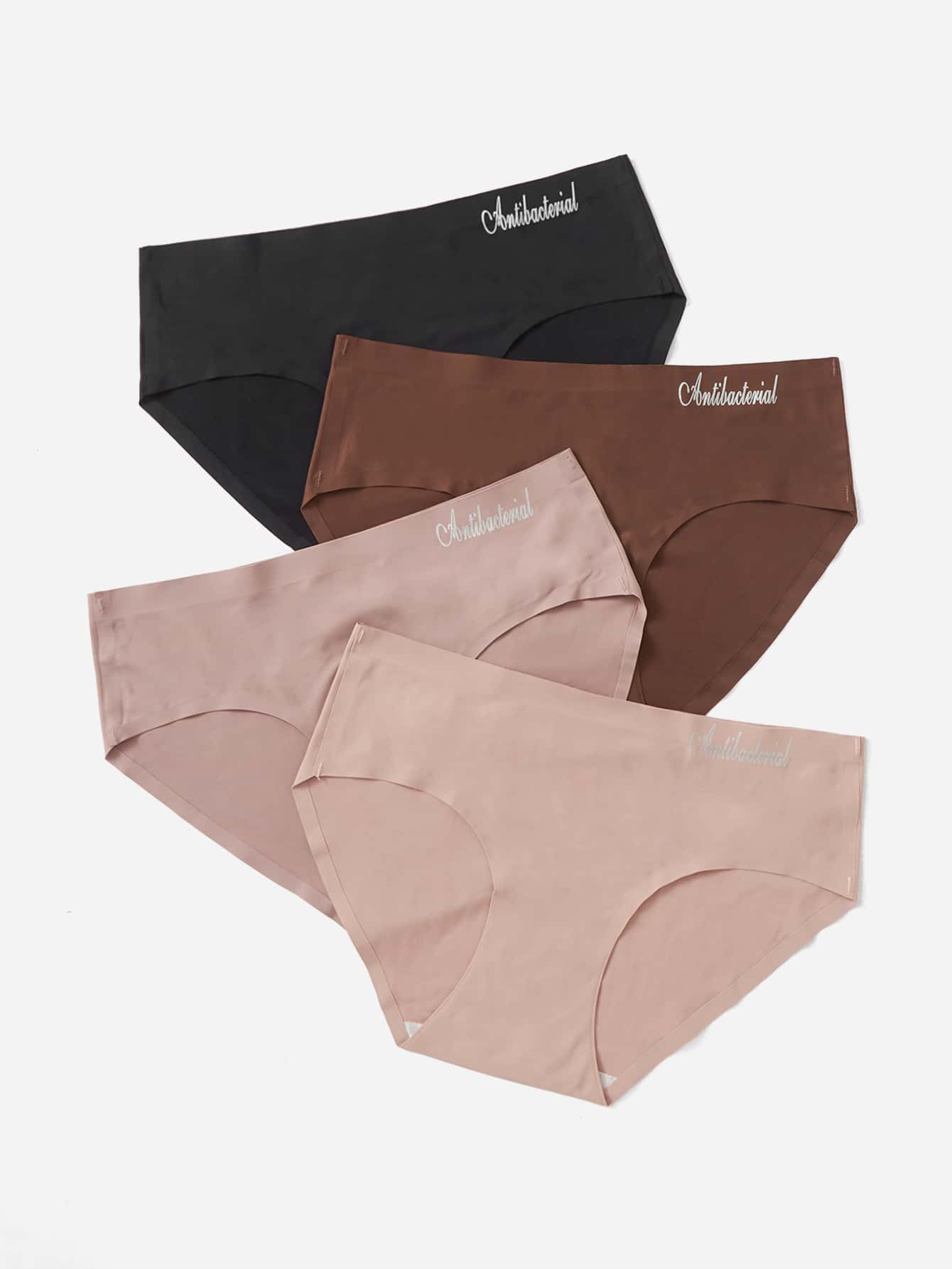 طقم لباس داخلي غير ظاهر بجرافيك عبارة - 4 قطع