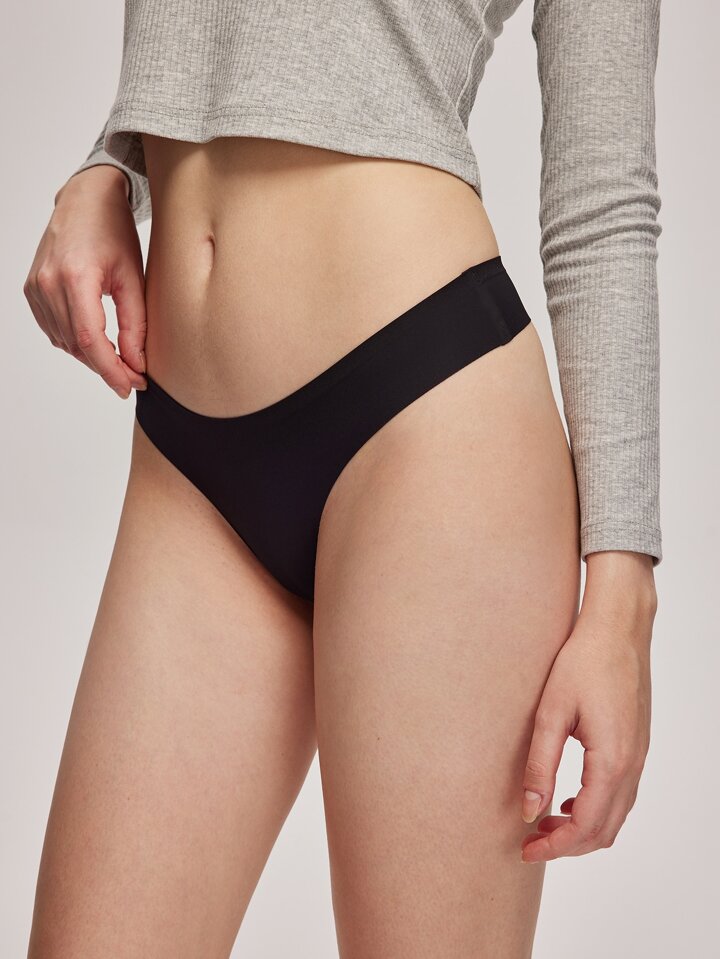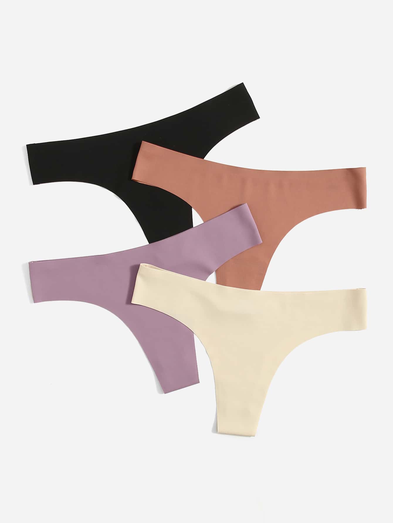 طقم سراويل داخلية بشكل مئزر بخصر منخفض غير ظاهرة للنساء 4 قطع