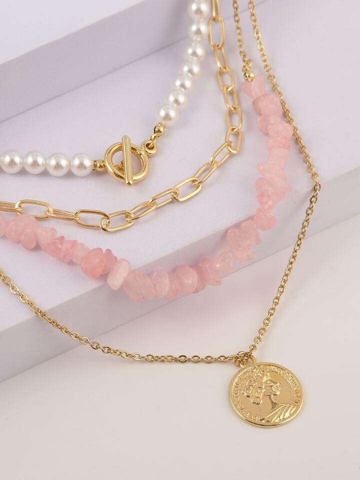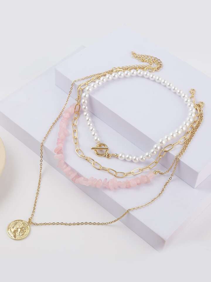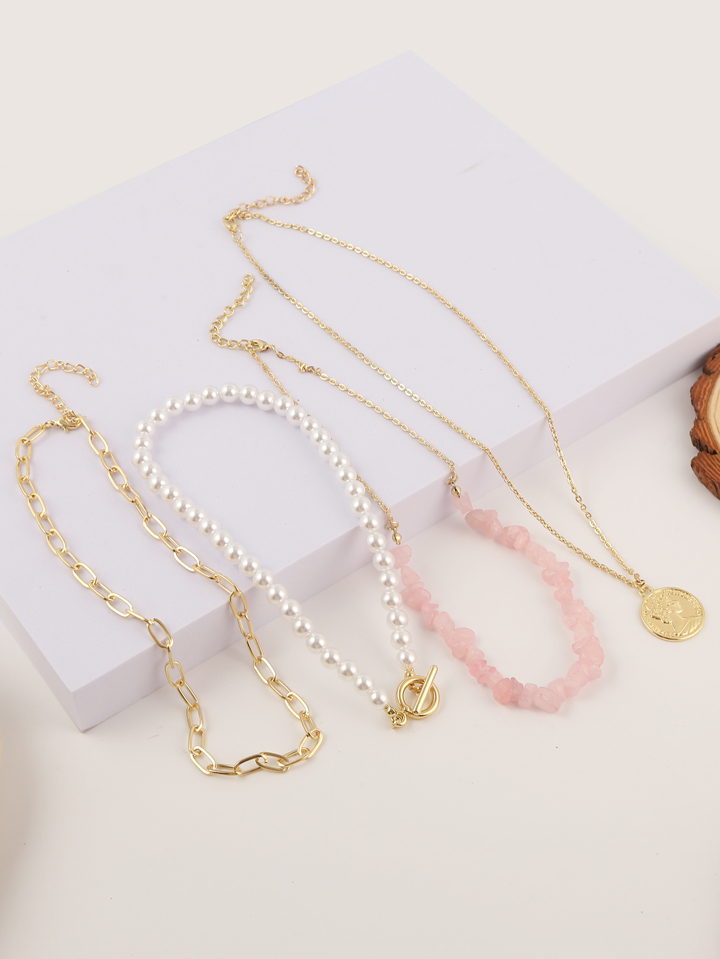 قلادة خرز لؤلؤ صناعي 4 قطع