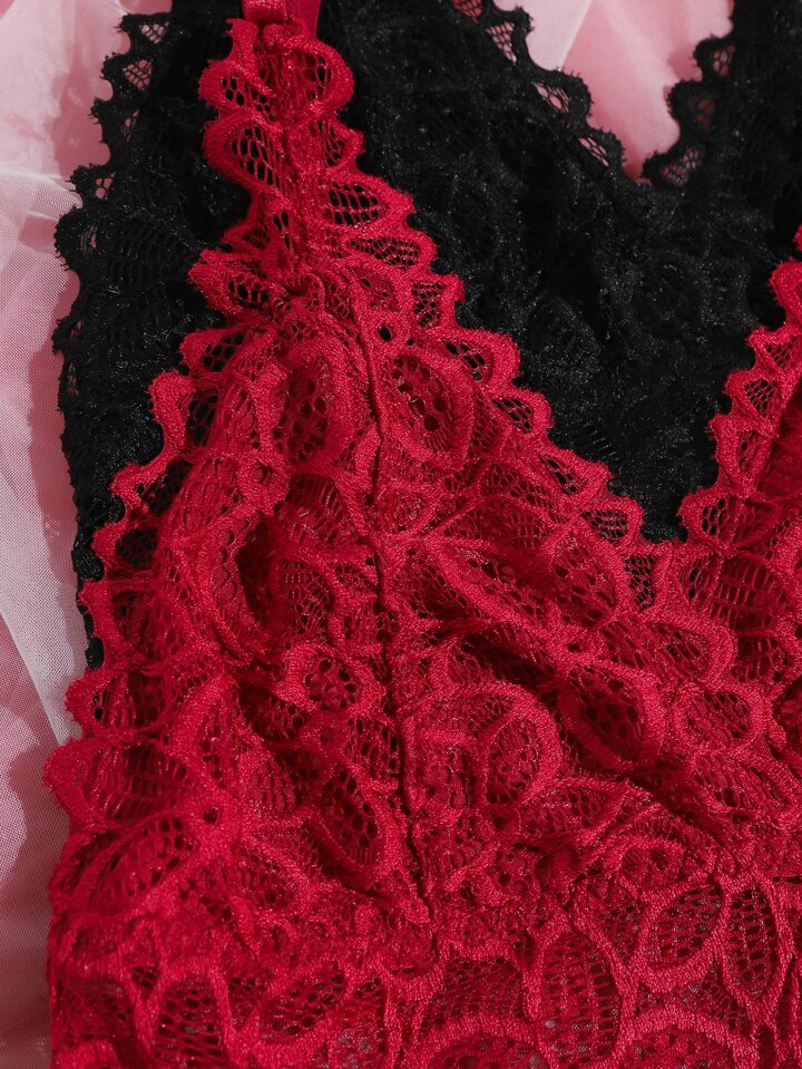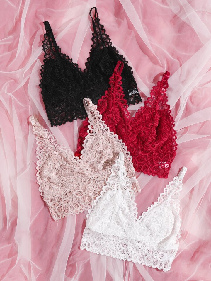 4 قطع مجموعة ملابس داخلية سكسية مزينة بالدانتيل الزهري