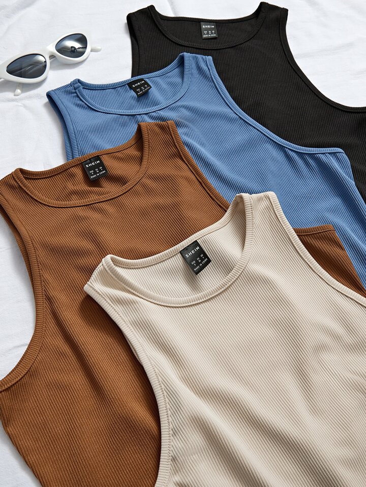 تانك توب موحد اللون بحياكة مضلعة - 4 قطع