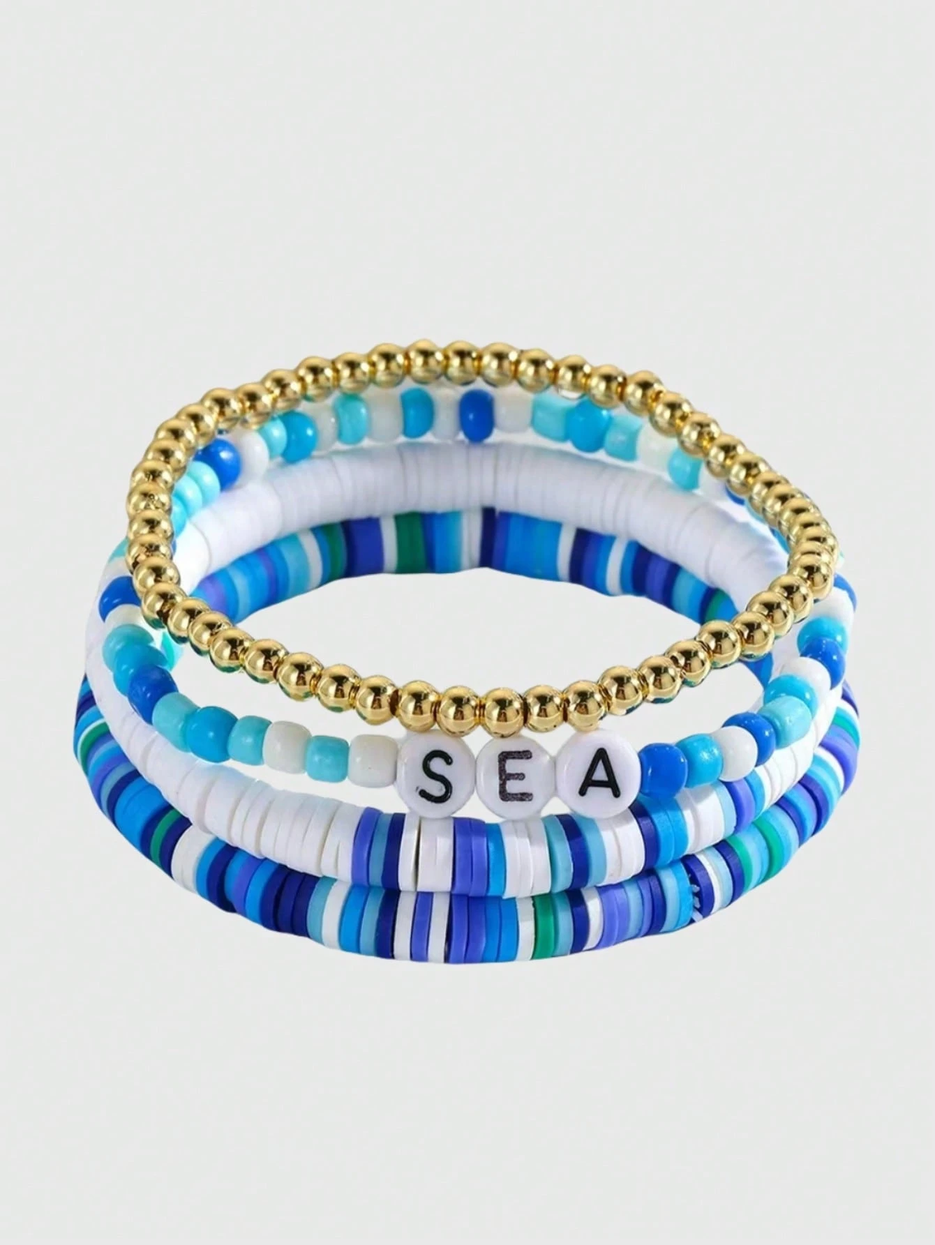 4 حبات/مجموعة أساور نسائية متعددة الطبقات من سبائك الحروف البوهيمية والخرز وطبقات الطين البوليمري