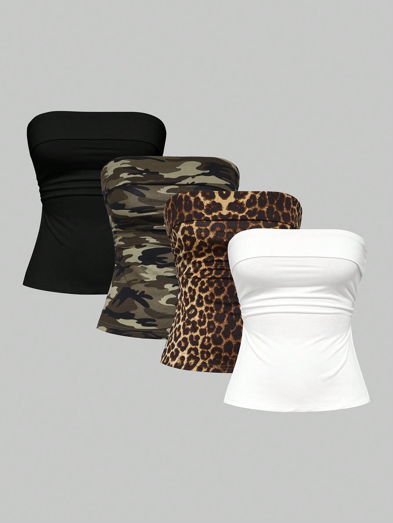 4 أجزاء قمصان نسائية متعددة الاستخدامات بتصميم قص وفتحة بالذيل