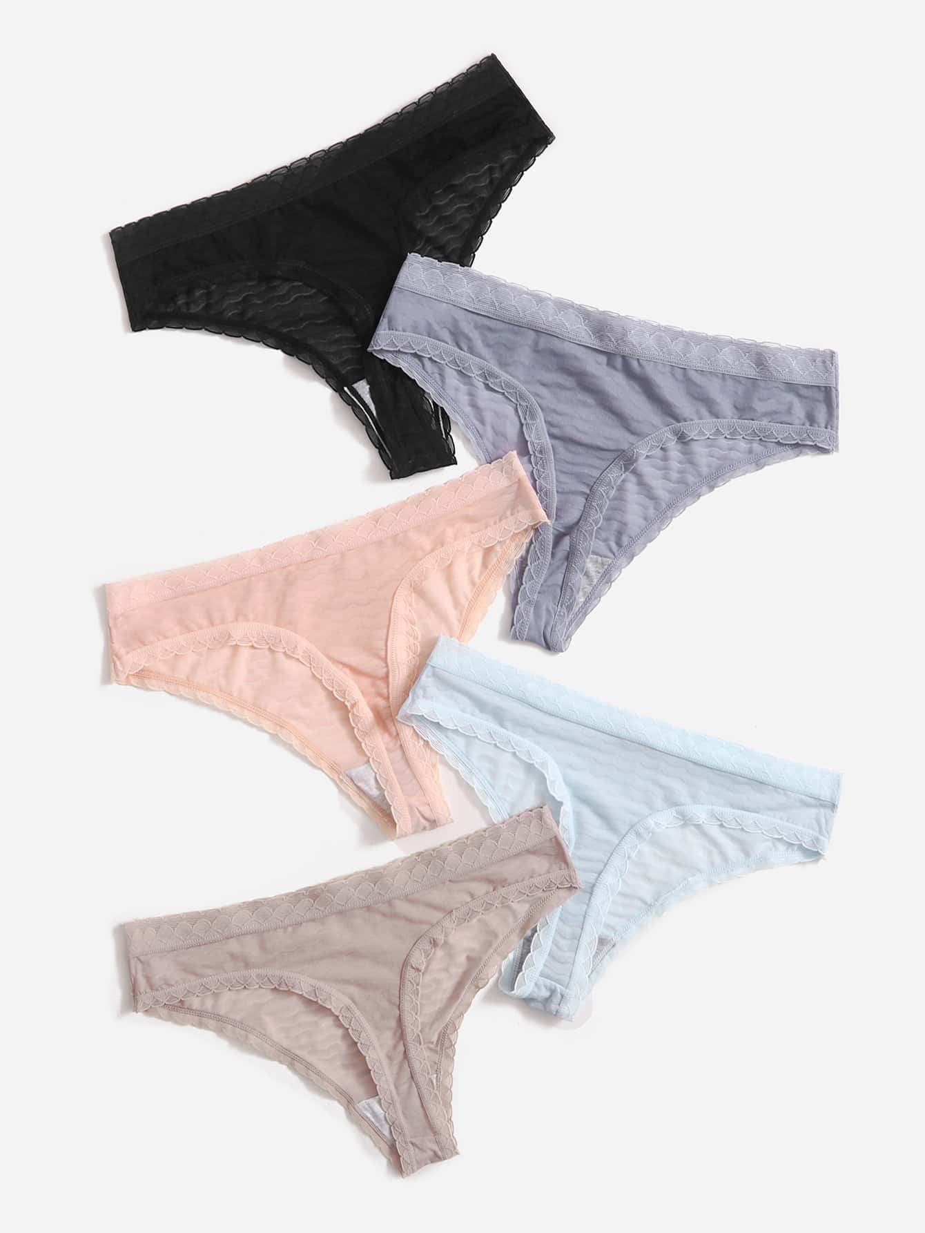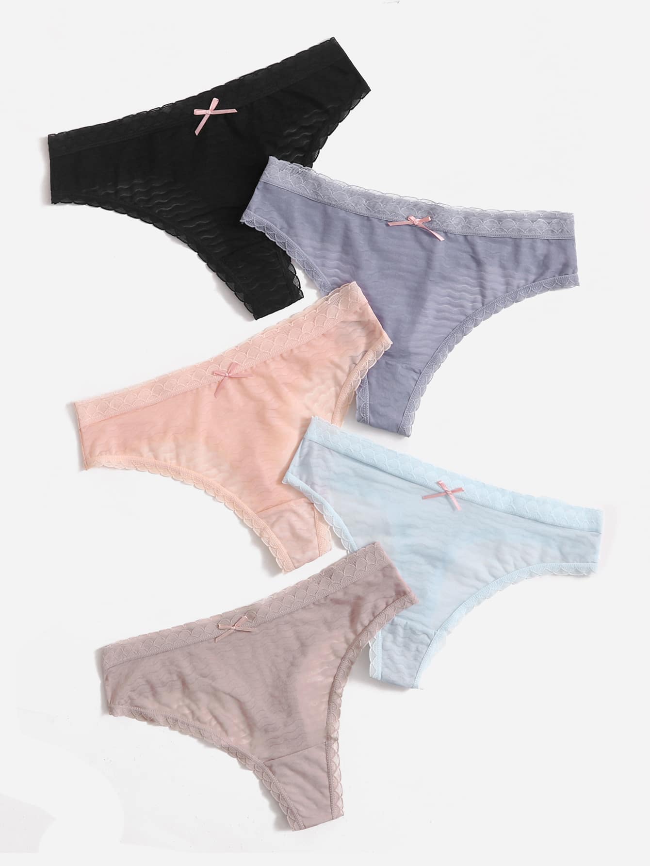 طقم لباس داخلي من 5 قطع مزين بفيونكة بلون موحد