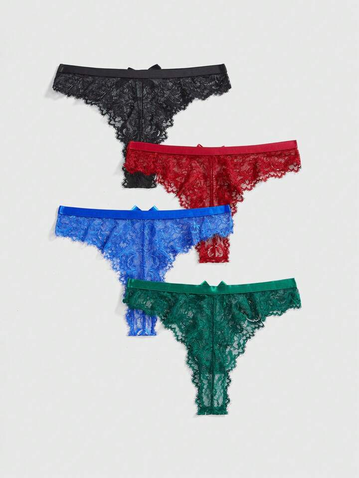 5 قطع طقم ملابس داخلية مزين بالشريط المنسوج والفيونكة بشكل مثلث