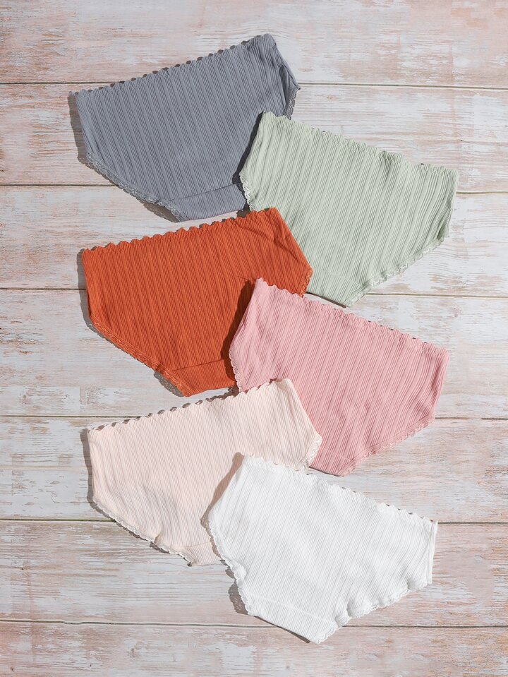 طقم لباس داخلي بأطراف دانتيل - 6 قطع