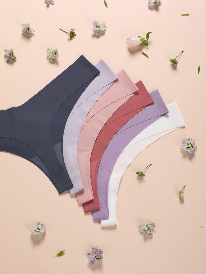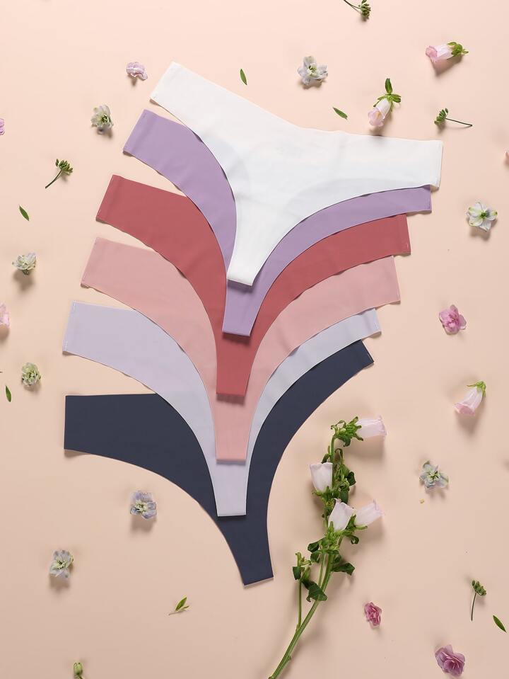طقم ثونغ غير مرئي بلون موحد 5 قطع