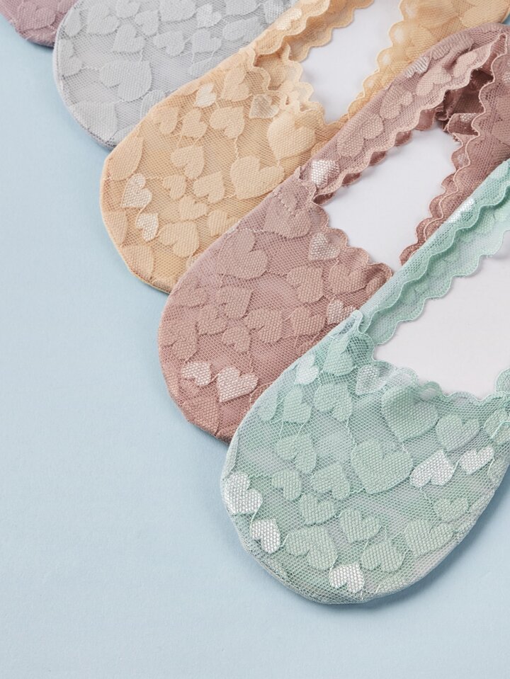 جوارب للكاحل شبكي نمط قلب 6 ازواج