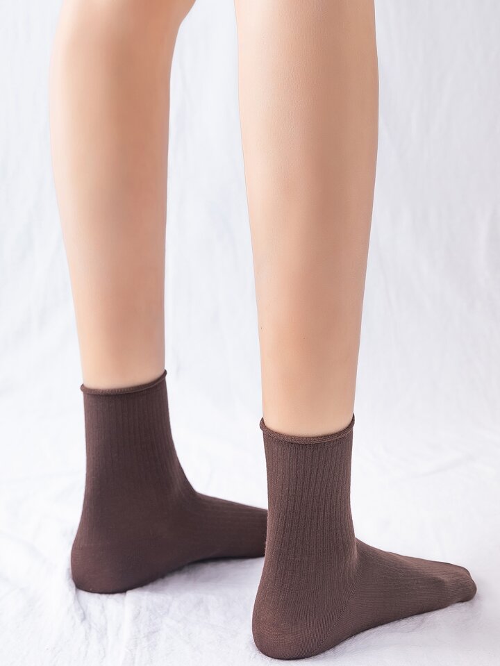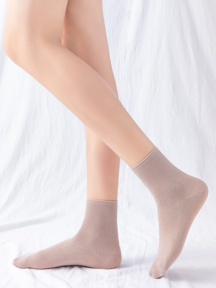 6 أزواج جوارب طاقم نسائية ذات لون واحد، خريفية