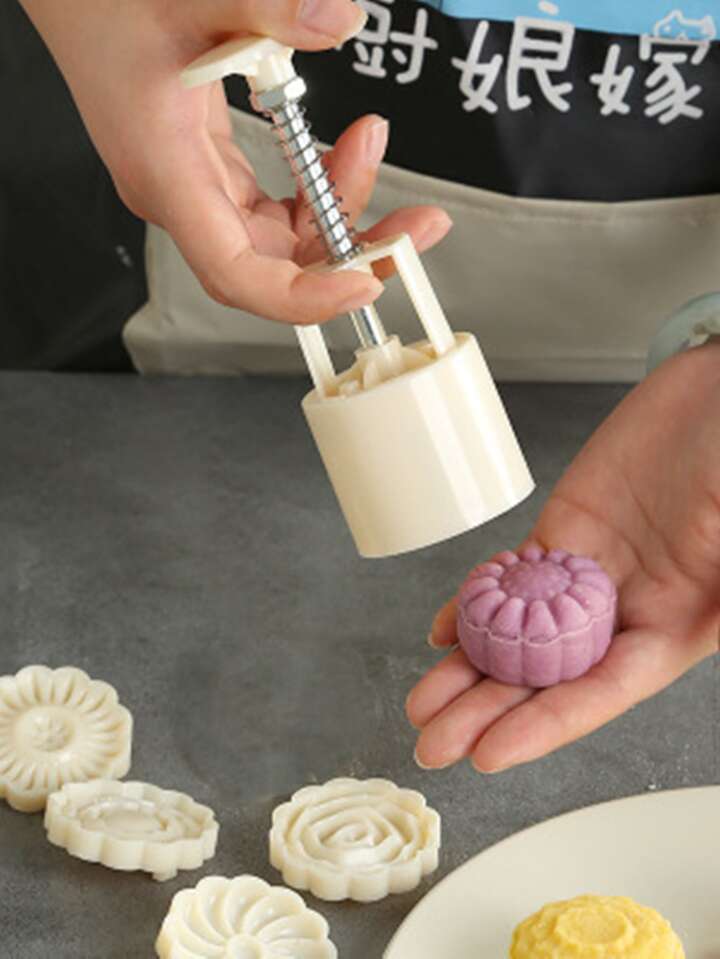 قالب كعكة القمر الثلجي DIY و نوع الضغط اليدوي الدائري 6 قطعة