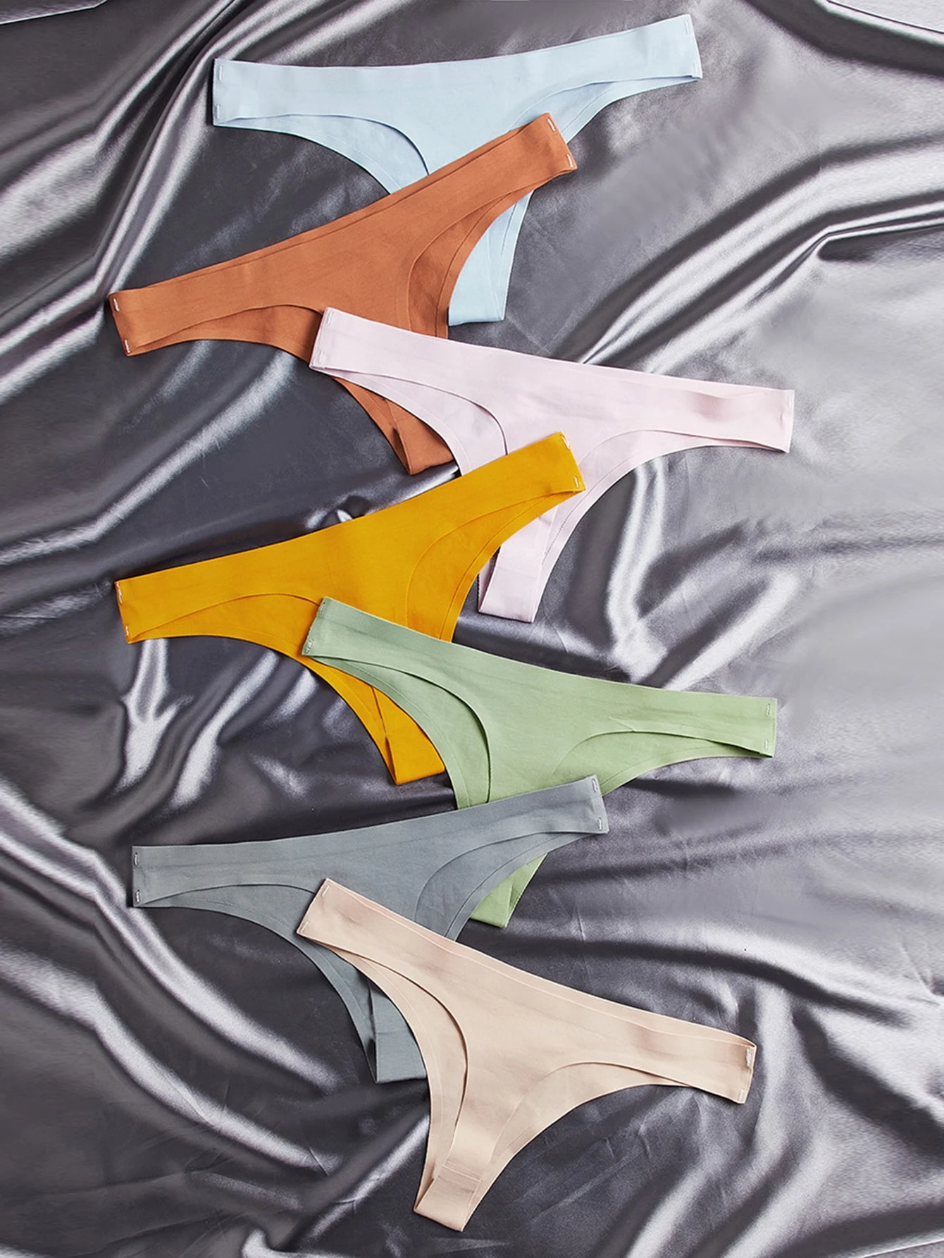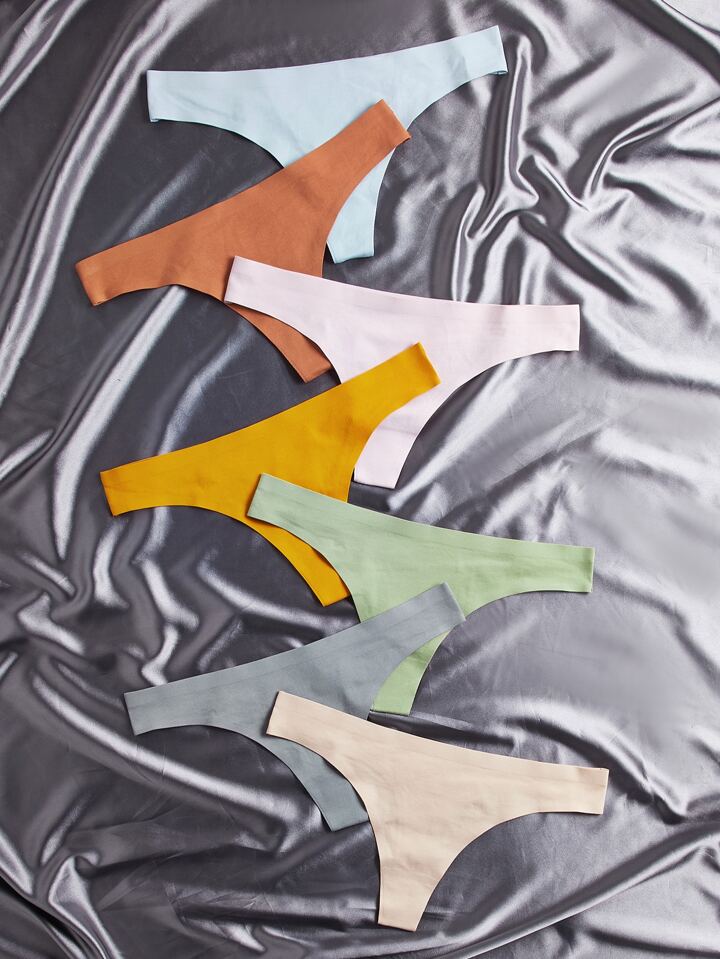 طقم سروال داخلي موحدة اللون سلس 7 قطع